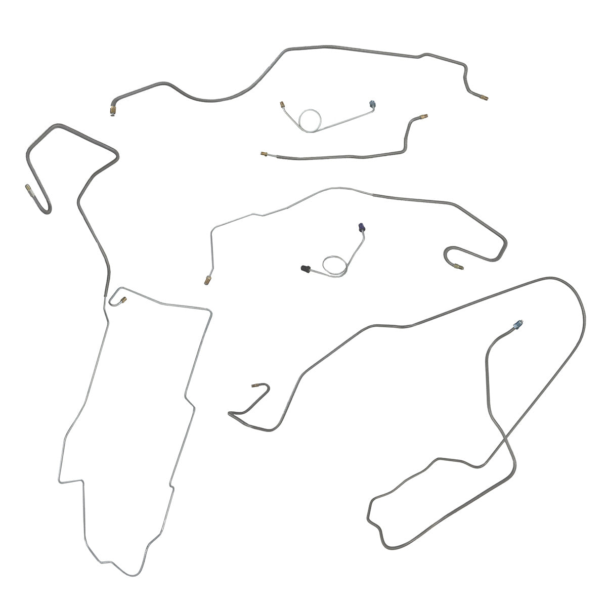 This preformed complete brake line kit will replace all the metal brake lines on your vehicle and includes the master cylinder lines, left front line and right front crossover line, intermediate lines, and rear axle lines/trailing arm lines.