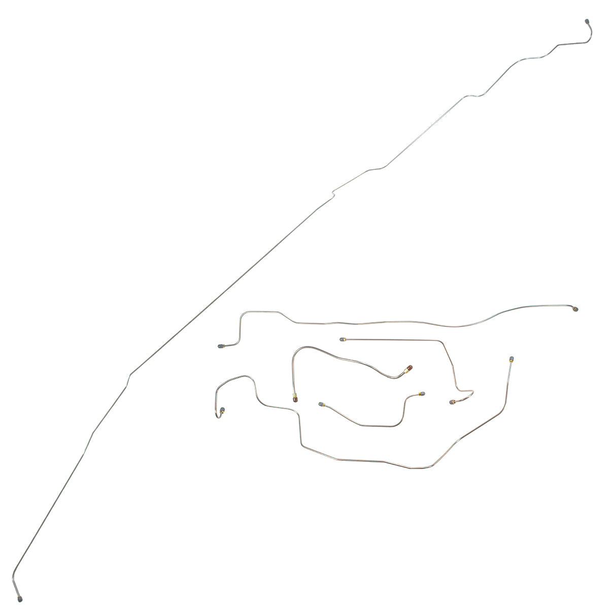This preformed complete brake line kit will replace all the metal brake lines on your vehicle and includes the master cylinder lines, left front line and right-front crossover line, intermediate lines, and rear axle lines/trailing arm lines.