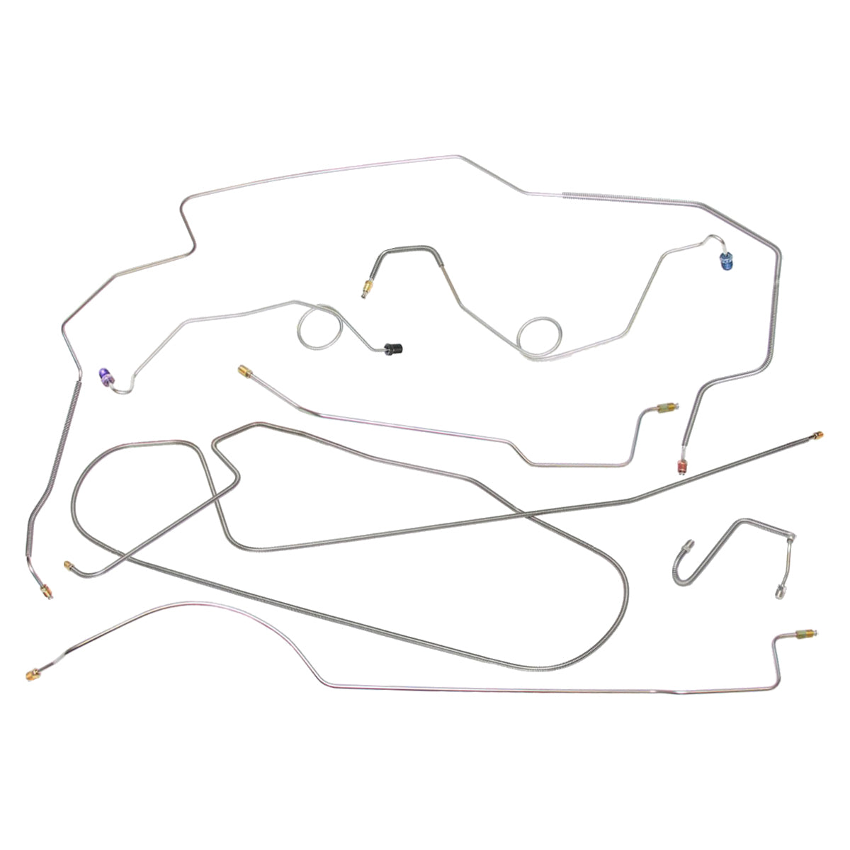 This preformed complete brake line kit will replace all the metal brake lines on your vehicle and includes the master cylinder lines, left front line and right-front crossover line, intermediate lines, and rear axle lines/trailing arm lines.