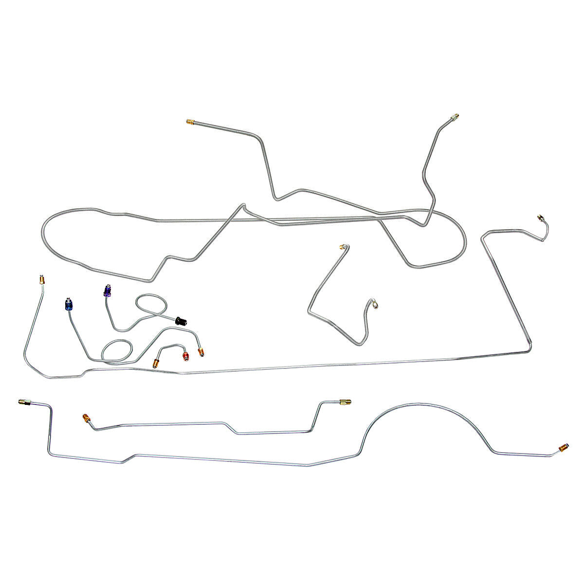 This preformed complete brake line kit will replace all the metal brake lines on your vehicle and includes the master cylinder lines, left front line and right-front crossover line, intermediate lines, and rear axle lines/trailing arm lines.