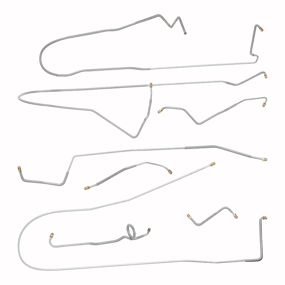 This preformed complete brake line kit will replace all the metal brake lines on your vehicle and includes the master cylinder lines, left front line and right-front crossover line, intermediate lines, and rear axle lines/trailing arm lines.