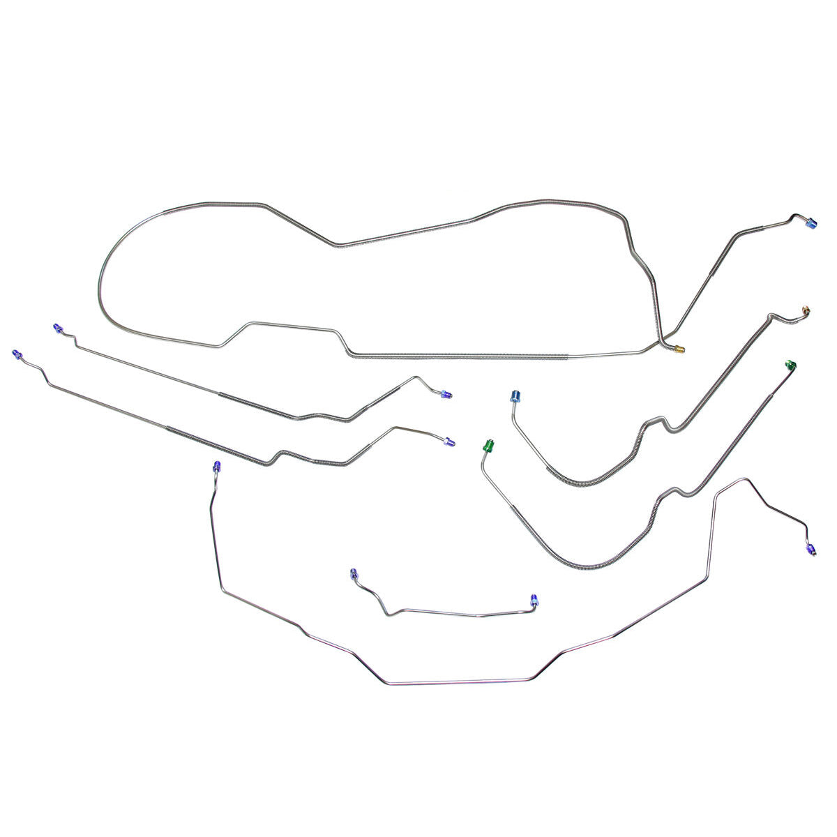 This preformed complete brake line kit will replace all the metal brake lines on your vehicle and includes the master cylinder lines, left front line and right-front crossover line, intermediate lines, and rear axle lines/trailing arm lines.
