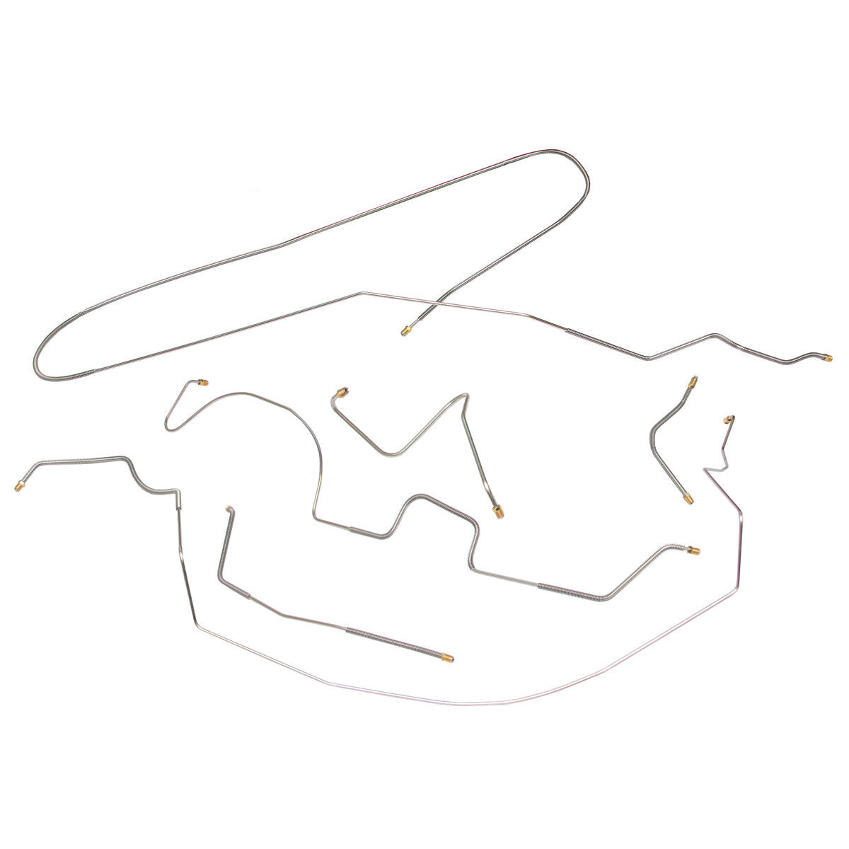 This preformed complete brake line kit will replace all the metal brake lines on your vehicle and includes the master cylinder lines, left front line and right front crossover line, intermediate lines, and rear axle lines/trailing arm lines.