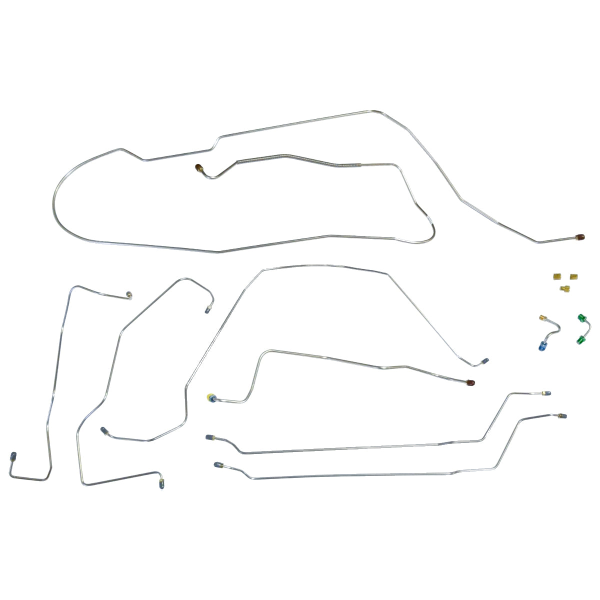 This preformed complete brake line kit will replace all the metal brake lines on your vehicle and includes the master cylinder lines, left front line and right-front crossover line, intermediate lines, and rear axle lines/trailing arm lines.