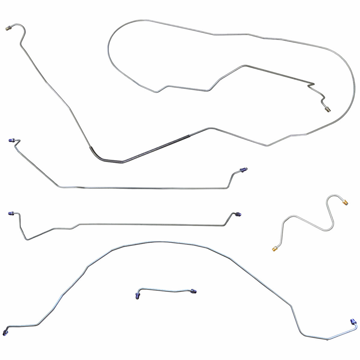 This preformed complete brake line kit will replace all the metal brake lines on your vehicle and includes the master cylinder lines, left front line and right-front crossover line, intermediate lines, and rear axle lines/trailing arm lines.