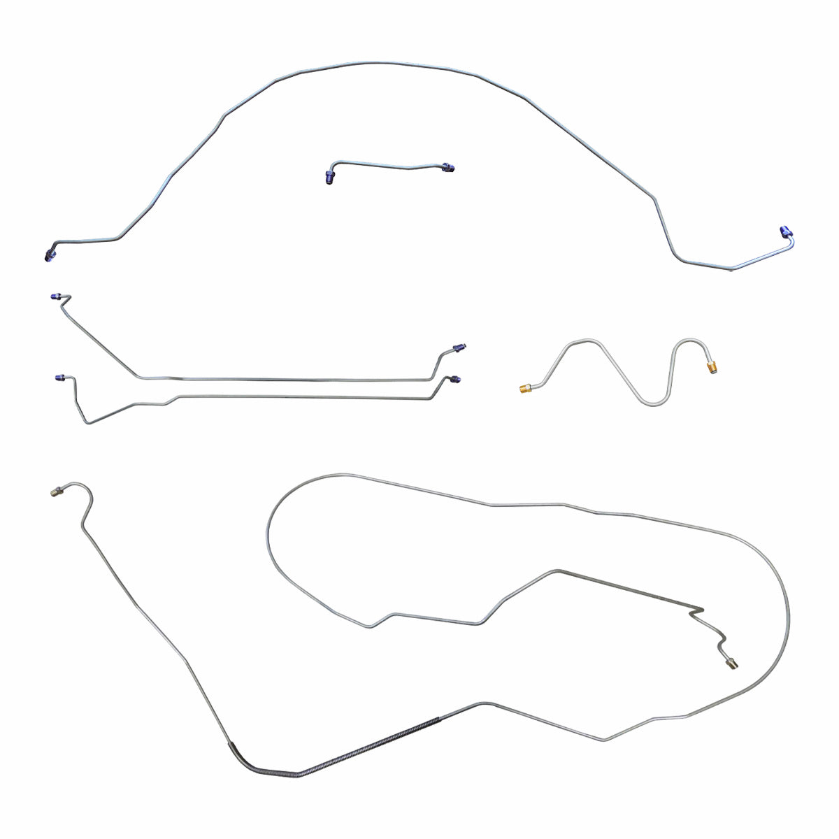 This preformed complete brake line kit will replace all the metal brake lines on your vehicle and includes the master cylinder lines, left front line and right-front crossover line, intermediate lines, and rear axle lines/trailing arm lines.