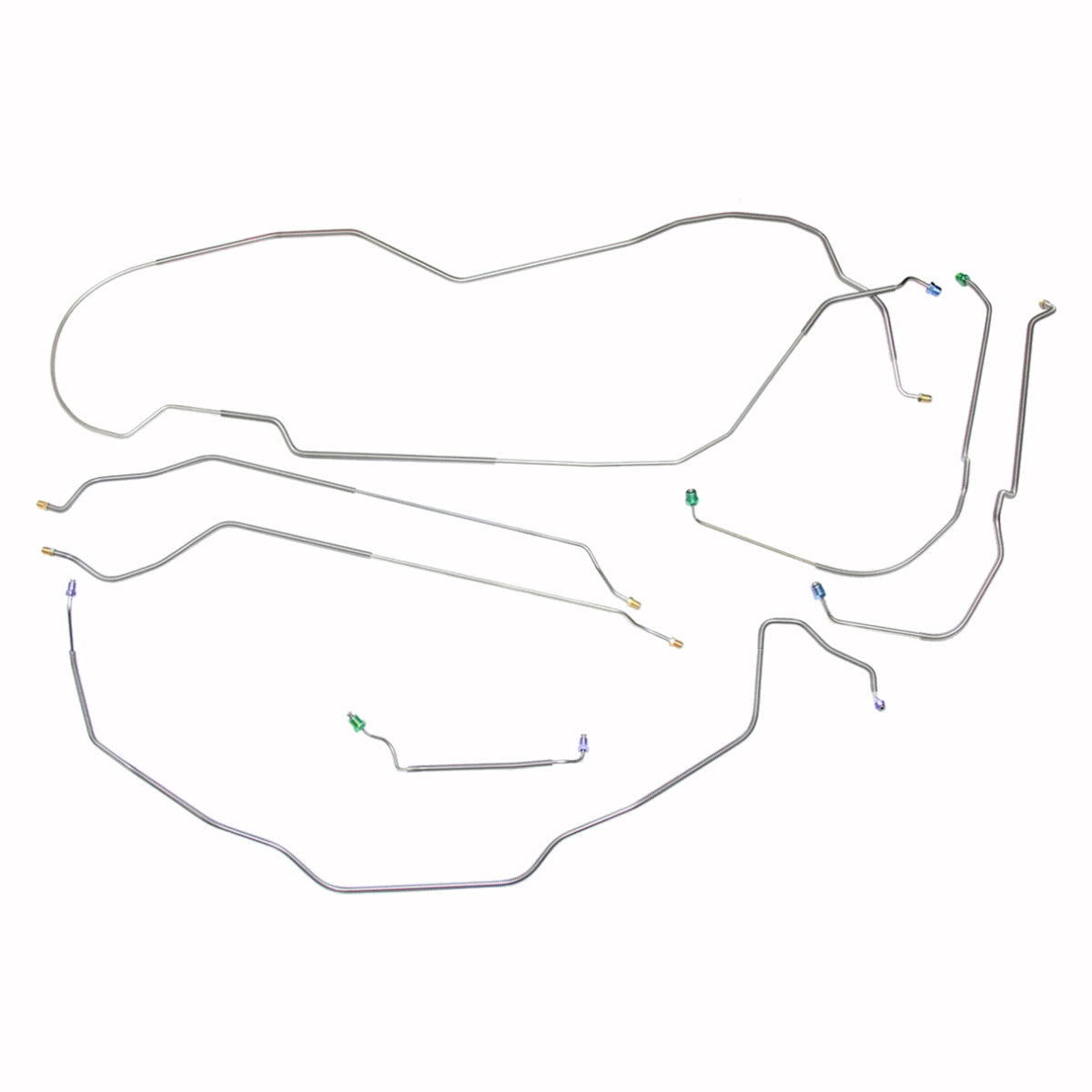 This preformed complete brake line kit will replace all the metal brake lines on your vehicle and includes the master cylinder lines, left front line and right front crossover line, intermediate lines, and rear axle lines/trailing arm lines.