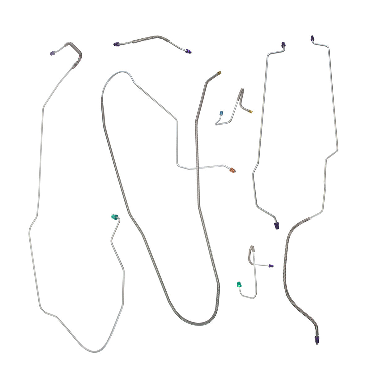 This preformed complete brake line kit will replace all the metal brake lines on your vehicle and includes the master cylinder lines, left front line and right front crossover line, intermediate lines, and rear axle lines/trailing arm lines.