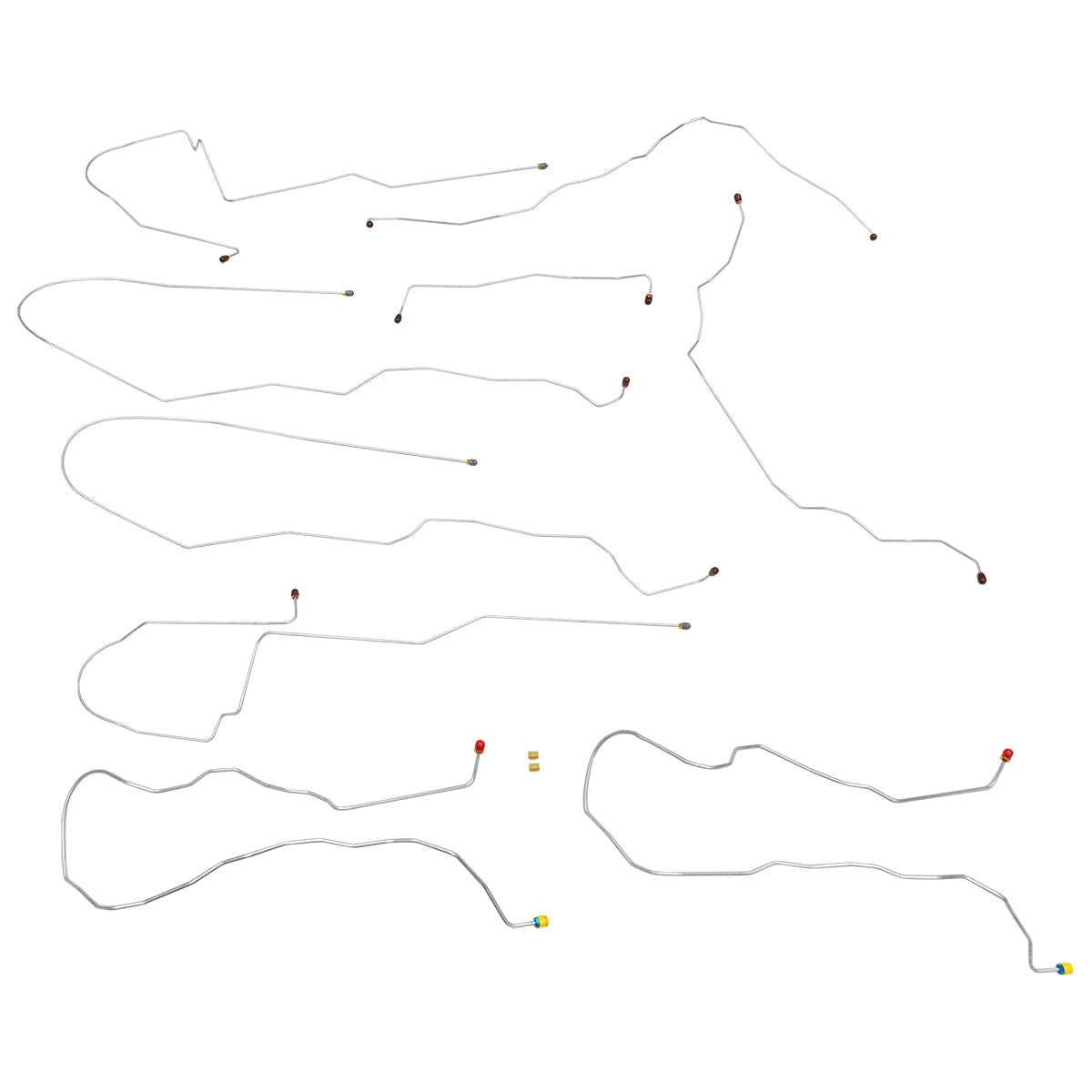 This preformed complete brake line kit will replace all the metal brake lines on your vehicle and includes the master cylinder lines, left front line and right-front crossover line, intermediate lines, and rear axle lines/trailing arm lines.