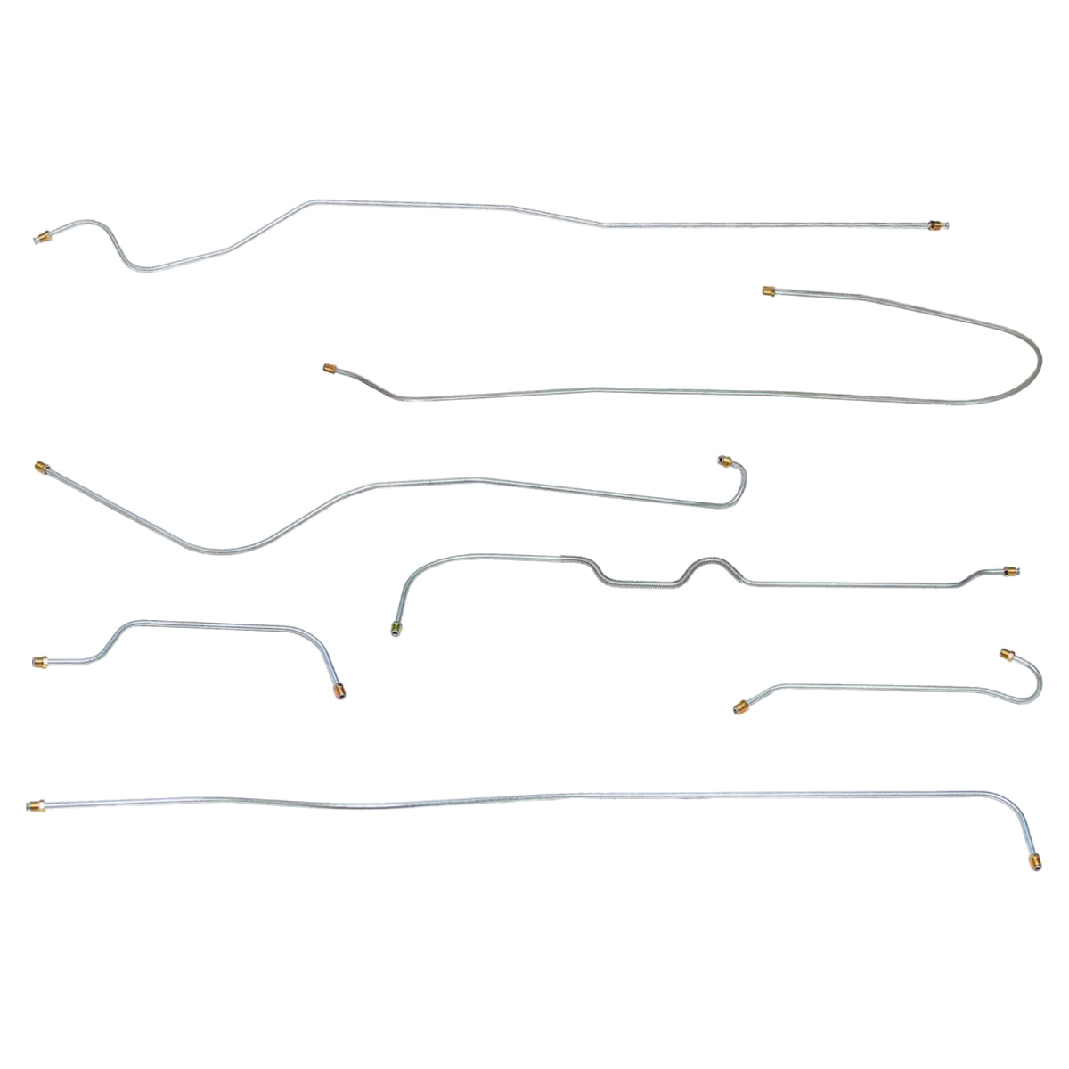 This preformed complete brake line kit will replace all the metal brake lines on your vehicle and includes the master cylinder lines, left front line and right front crossover line, intermediate lines, and rear axle lines/trailing arm lines.
