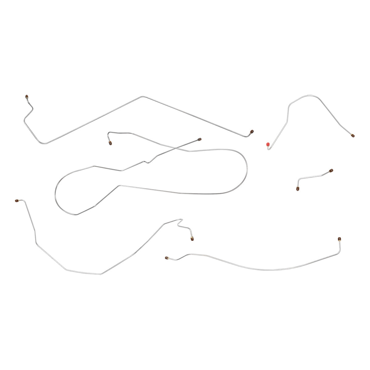 This preformed complete brake line kit will replace all the metal brake lines on your vehicle and includes the master cylinder lines, left front line and right front crossover line, intermediate lines, and rear axle lines/trailing arm lines.