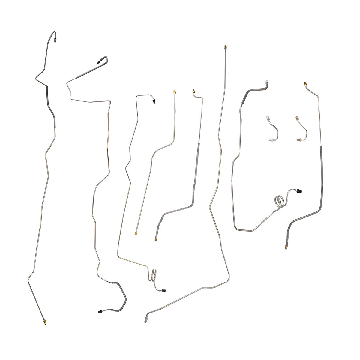 This preformed complete brake line kit will replace all the metal brake lines on your vehicle and includes the master cylinder lines, left front line and right front crossover line, intermediate lines, and rear axle lines/trailing arm lines.