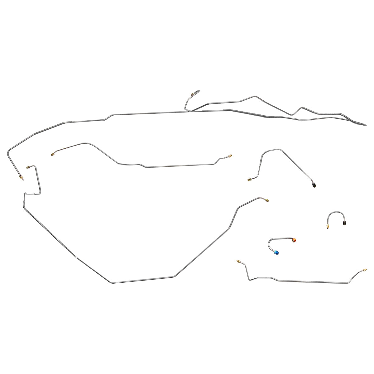 This preformed complete brake line kit will replace all the metal brake lines on your vehicle and includes the master cylinder lines, left front line and right front crossover line, intermediate lines, and rear axle lines/trailing arm lines.