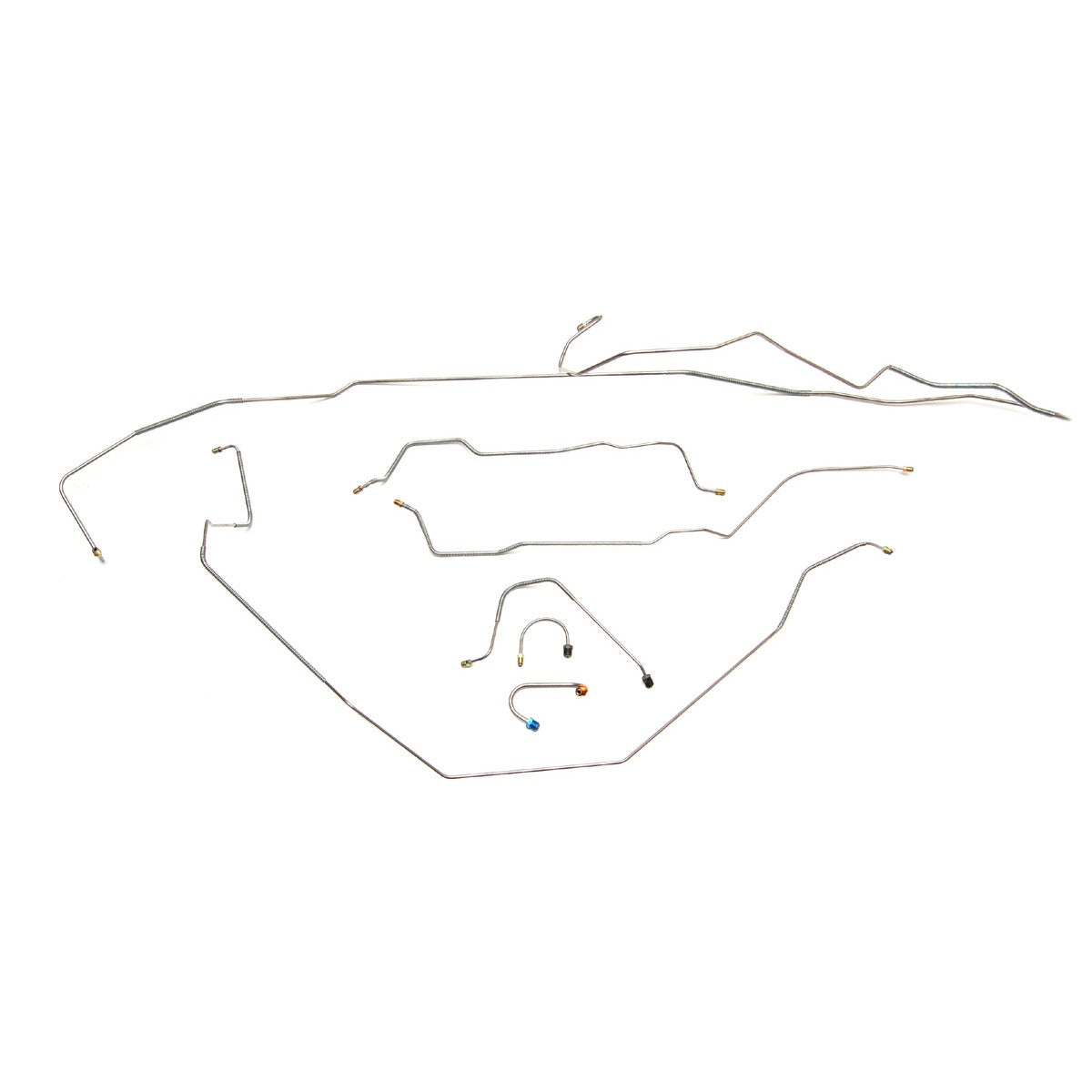 This preformed complete brake line kit will replace all the metal brake lines on your vehicle and includes the master cylinder lines, left front line and right front crossover line, intermediate lines, and rear axle lines/trailing arm lines.