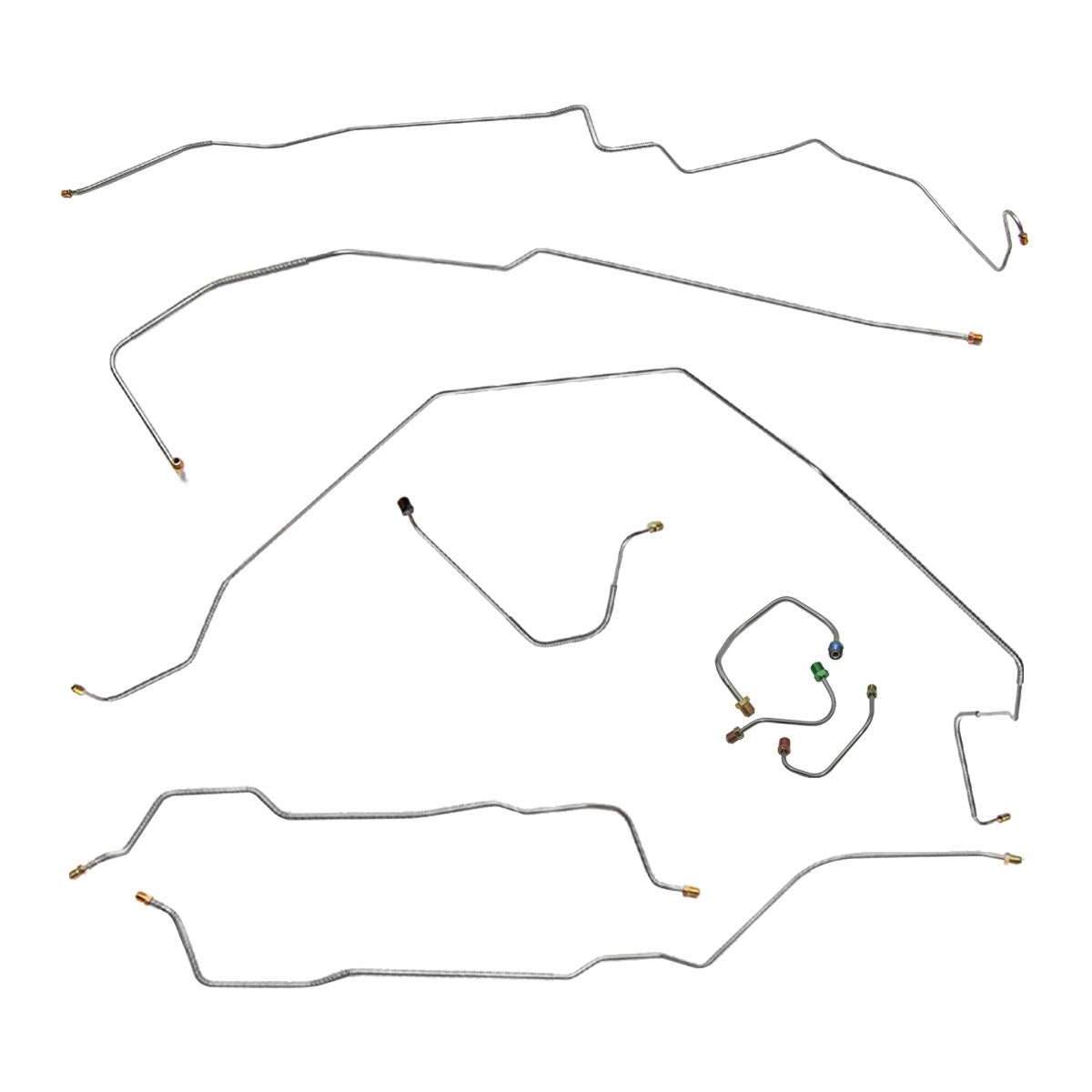 This preformed complete brake line kit will replace all the metal brake lines on your vehicle and includes the master cylinder lines, left front line and right-front crossover line, intermediate lines, and rear axle lines/trailing arm lines.