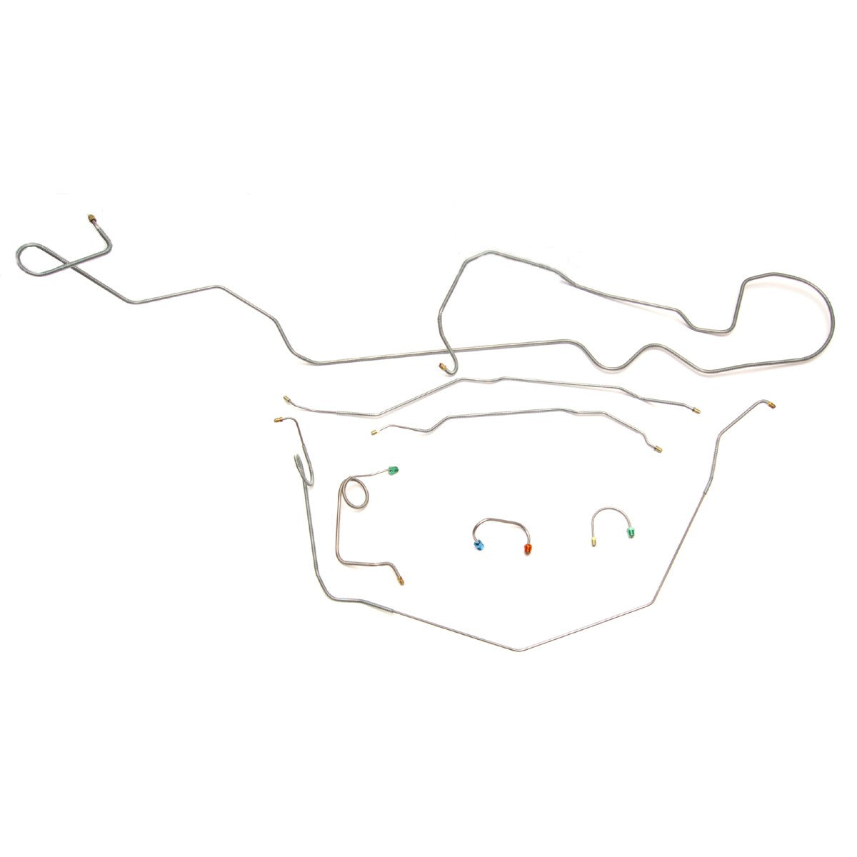 This preformed complete brake line kit will replace all the metal brake lines on your vehicle and includes the master cylinder lines, left front line and right front crossover line, intermediate lines, and rear axle lines/trailing arm lines.