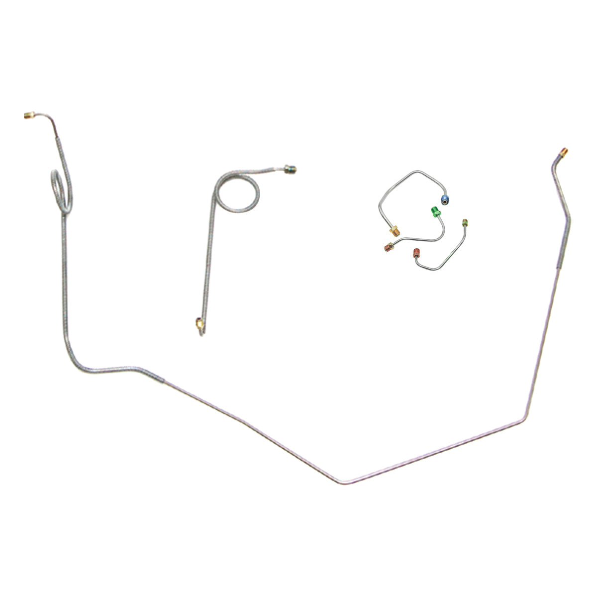 This preformed front brake line kit includes all the metal brake lines to supply the front two wheels of your vehicle and includes the master cylinder lines, left front line, and right front crossover line.