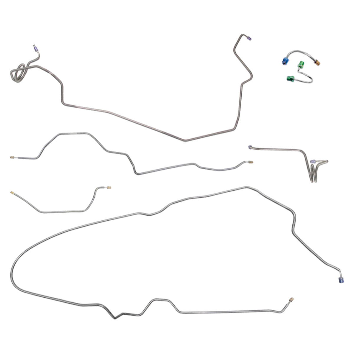 This preformed complete brake line kit will replace all the metal brake lines on your vehicle and includes the master cylinder lines, left front line and right front crossover line, intermediate lines, and rear axle lines/trailing arm lines.