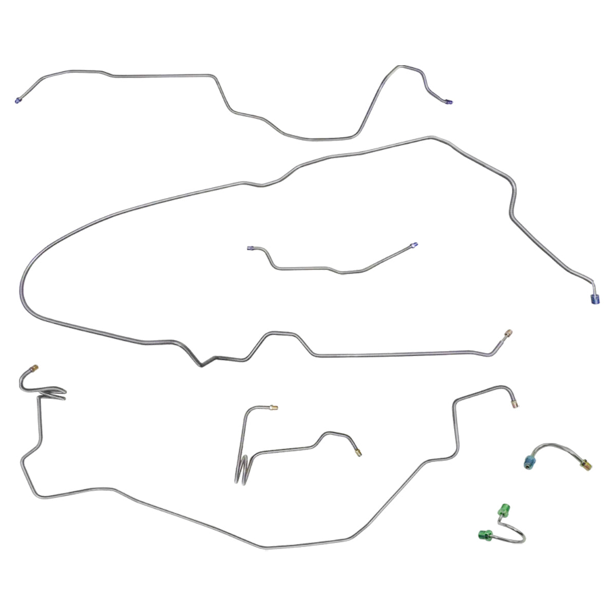 This preformed complete brake line kit will replace all the metal brake lines on your vehicle and includes the master cylinder lines, left front line and right front crossover line, intermediate lines, and rear axle lines/trailing arm lines.