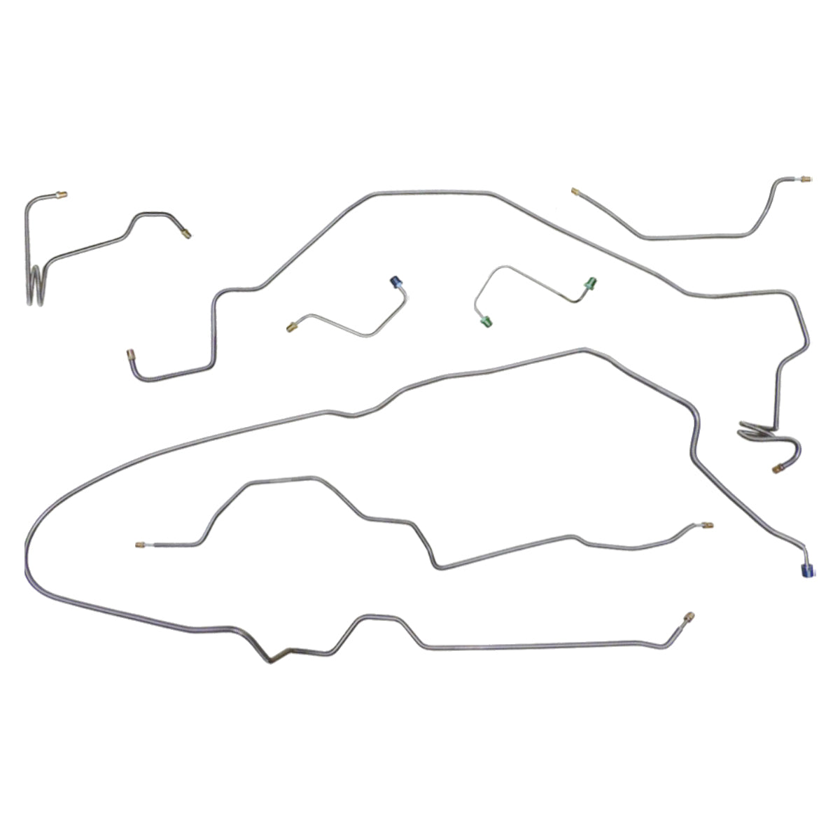 This preformed complete brake line kit will replace all the metal brake lines on your vehicle and includes the master cylinder lines, left front line and right front crossover line, intermediate lines, and rear axle lines/trailing arm lines.