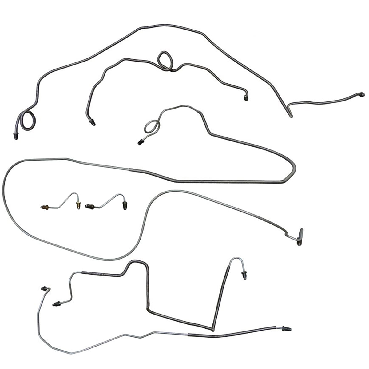 This preformed complete brake line kit will replace all the metal brake lines on your vehicle and includes the master cylinder lines, left front line and right front crossover line, intermediate lines, and rear axle lines/trailing arm lines.