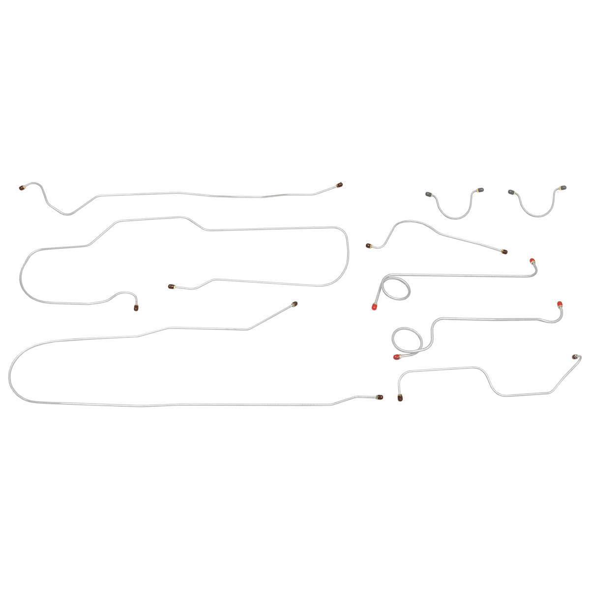 This preformed complete brake line kit will replace all the metal brake lines on your vehicle and includes the master cylinder lines, left front line and right front crossover line, intermediate lines, and rear axle lines/trailing arm lines.