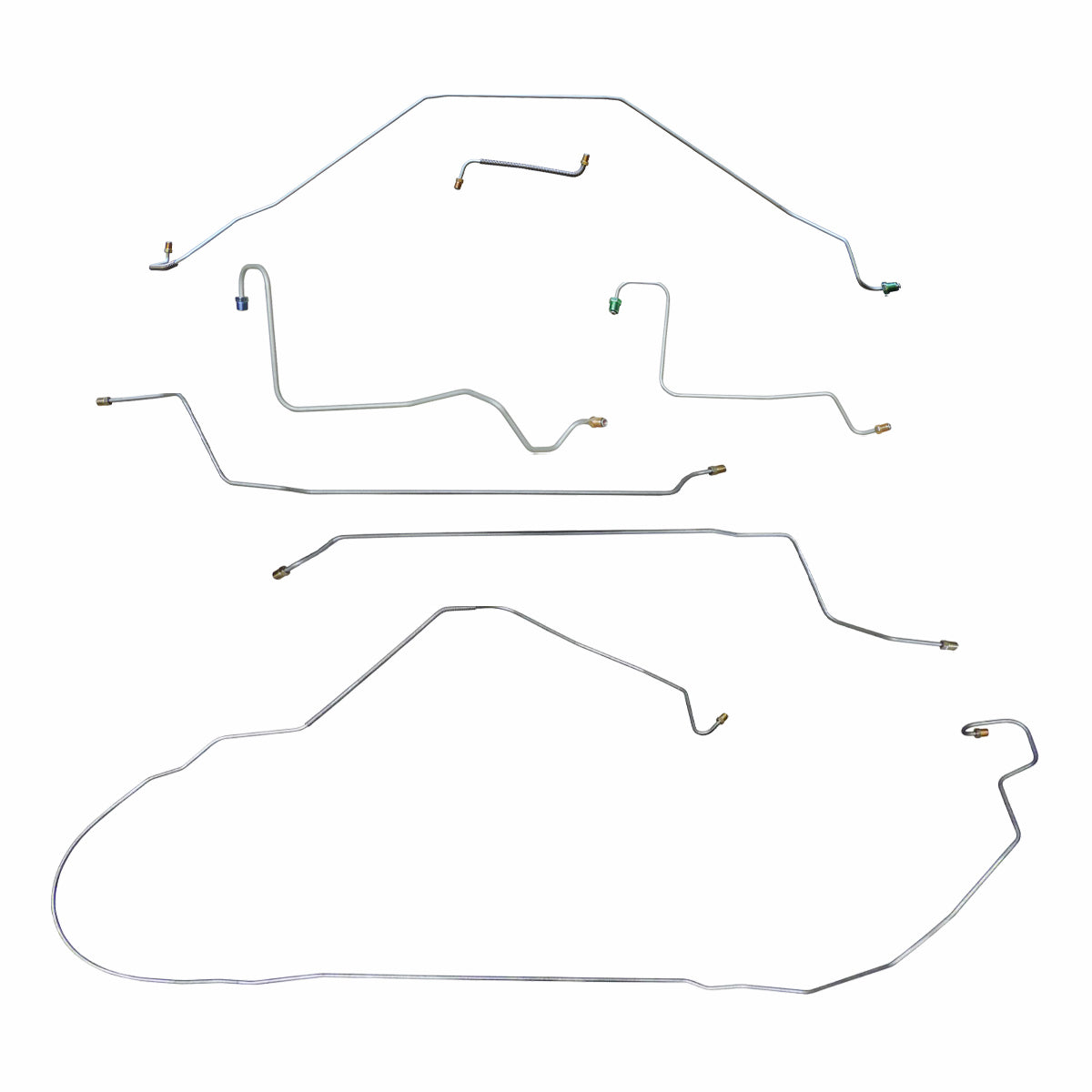 This preformed complete brake line kit will replace all the metal brake lines on your vehicle and includes the master cylinder lines, left front line and right-front crossover line, intermediate lines, and rear axle lines/trailing arm lines.