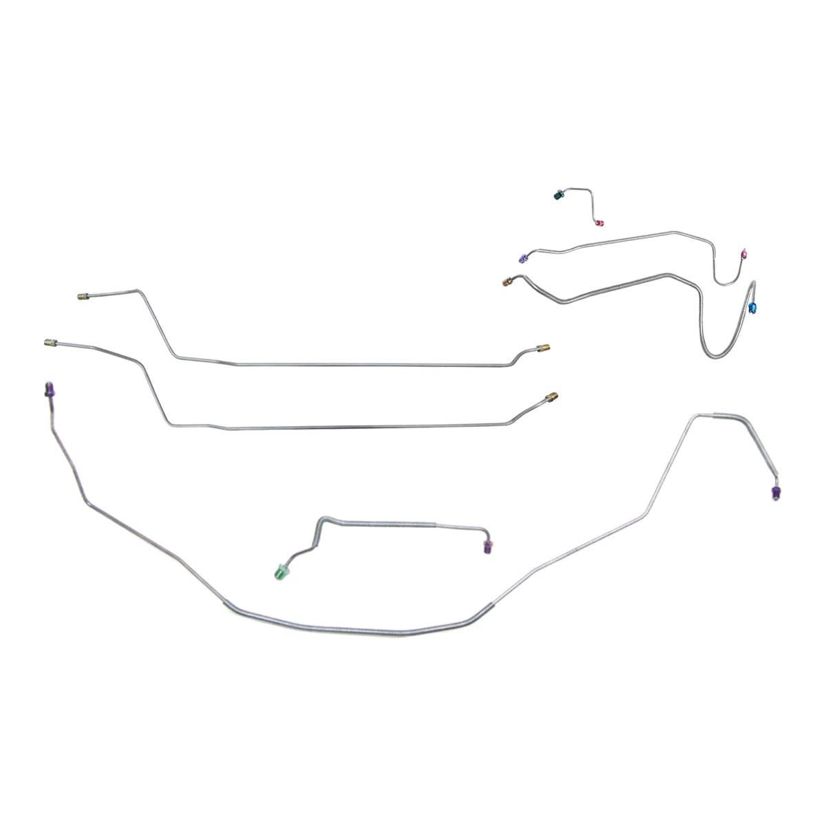 This preformed complete brake line kit will replace all the metal brake lines on your vehicle and includes the master cylinder lines, left front line and right-front crossover line, intermediate lines, and rear axle lines/trailing arm lines.