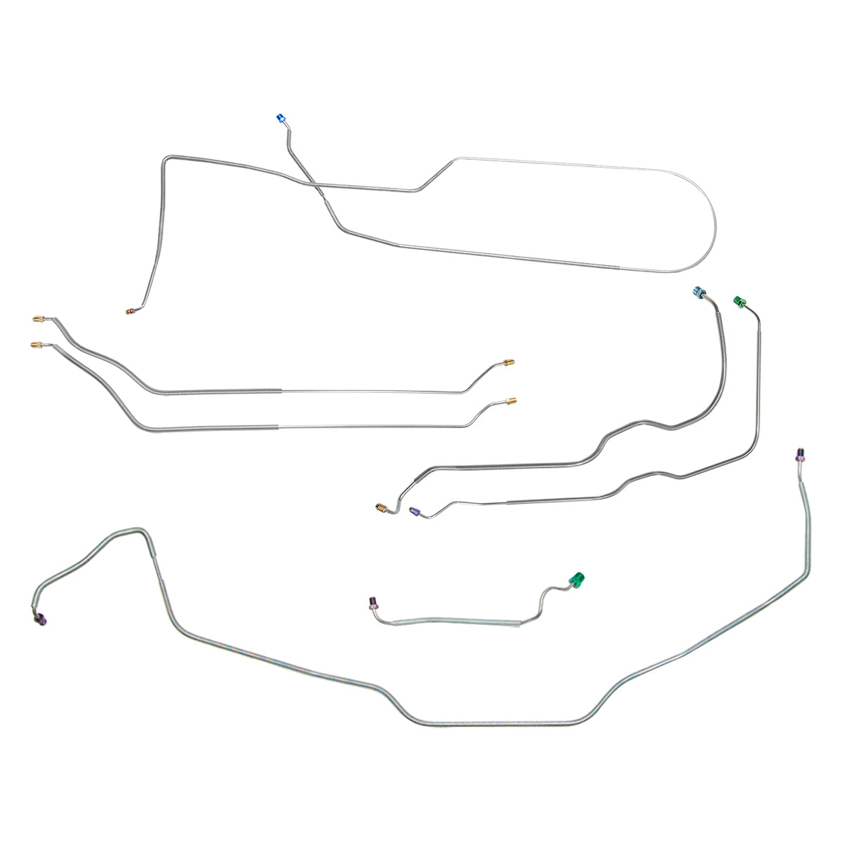 This preformed complete brake line kit will replace all the metal brake lines on your vehicle and includes the master cylinder lines, left front line and right-front crossover line, intermediate lines, and rear axle lines/trailing arm lines.