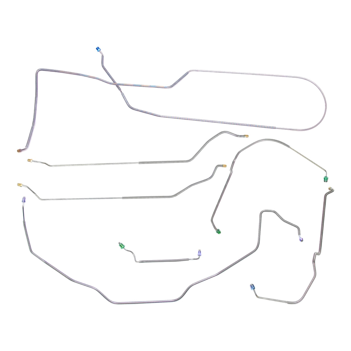 This preformed complete brake line kit will replace all the metal brake lines on your vehicle and includes the master cylinder lines, left front line and right front crossover line, intermediate lines, and rear axle lines/trailing arm lines.