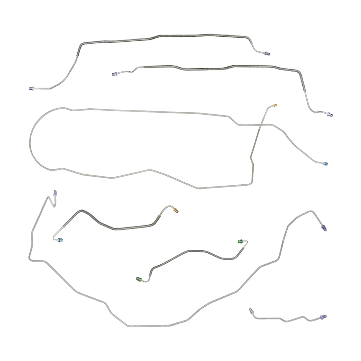 This preformed complete brake line kit will replace all the metal brake lines on your vehicle and includes the master cylinder lines, left front line and right front crossover line, intermediate lines, and rear axle lines/trailing arm lines.