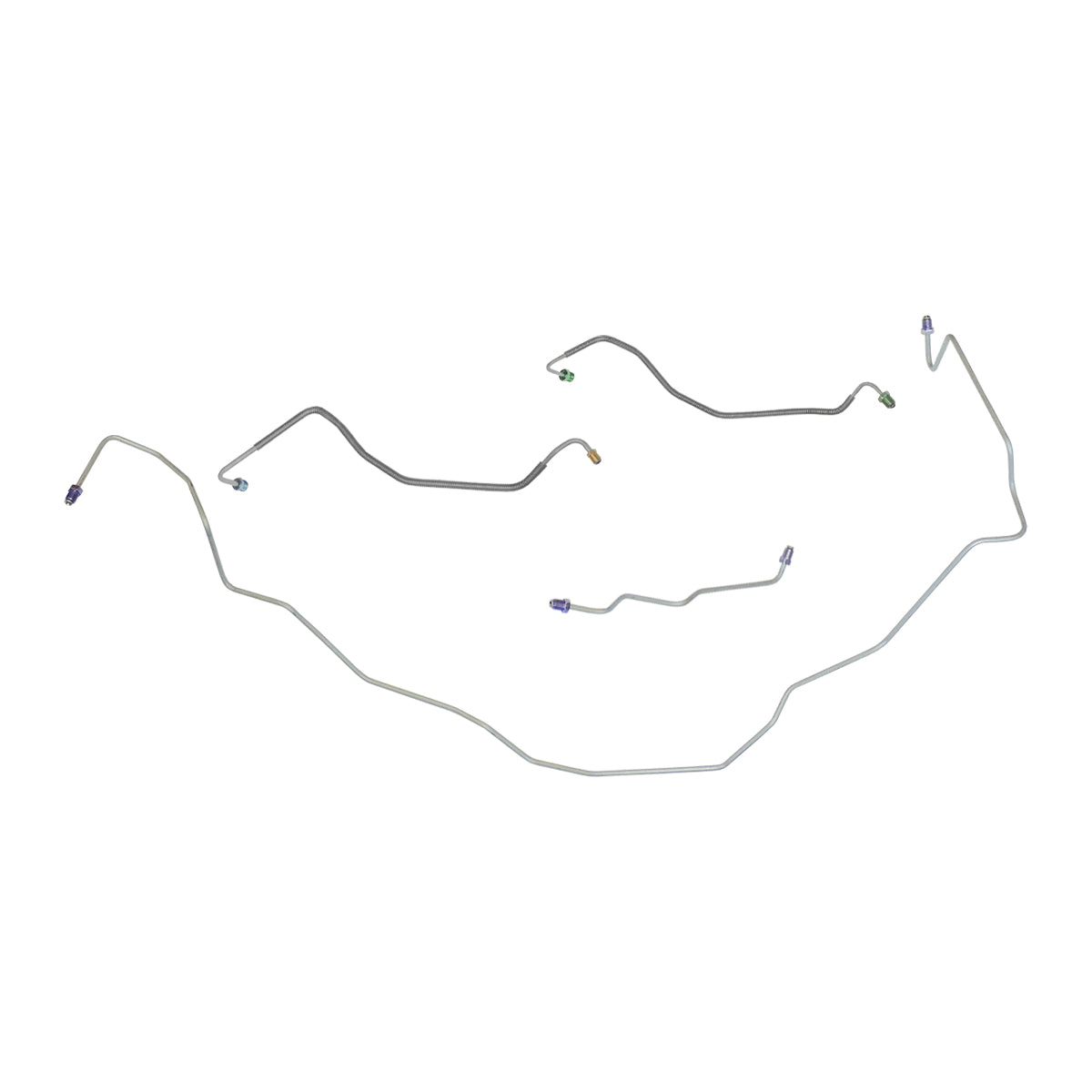 This preformed front brake line kit includes all the metal brake lines to supply the front two wheels of your vehicle and includes the master cylinder lines, left front line, and right front crossover line.