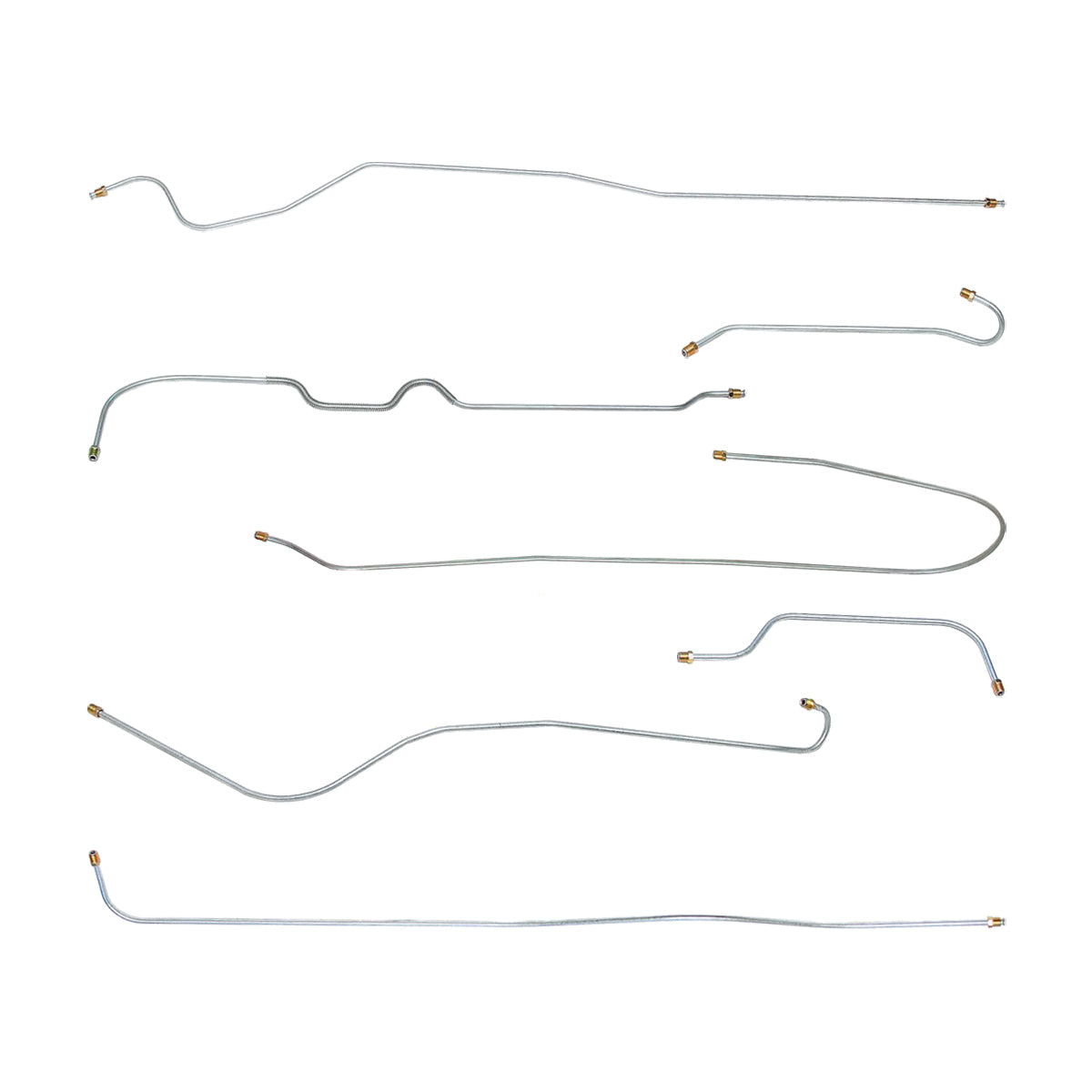 This preformed complete brake line kit will replace all the metal brake lines on your vehicle and includes the master cylinder lines, left front line and right-front crossover line, intermediate lines, and rear axle lines/trailing arm lines.
