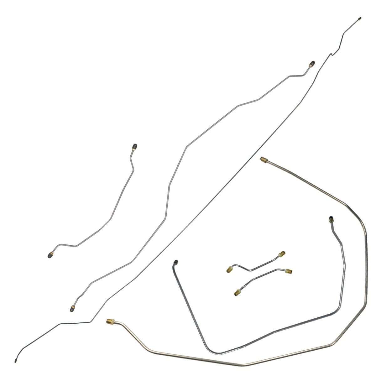 This preformed complete brake line kit will replace all the metal brake lines on your vehicle and includes the master cylinder lines, left front line and right-front crossover line, intermediate lines, and rear axle lines/trailing arm lines.