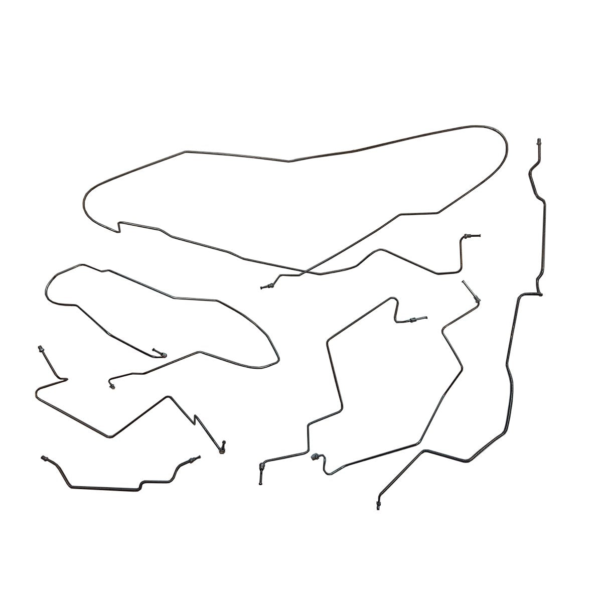 This preformed complete brake line kit will replace all the metal brake lines on your vehicle and includes the master cylinder lines, left front line and right front crossover line, intermediate lines, and rear axle lines/trailing arm lines.