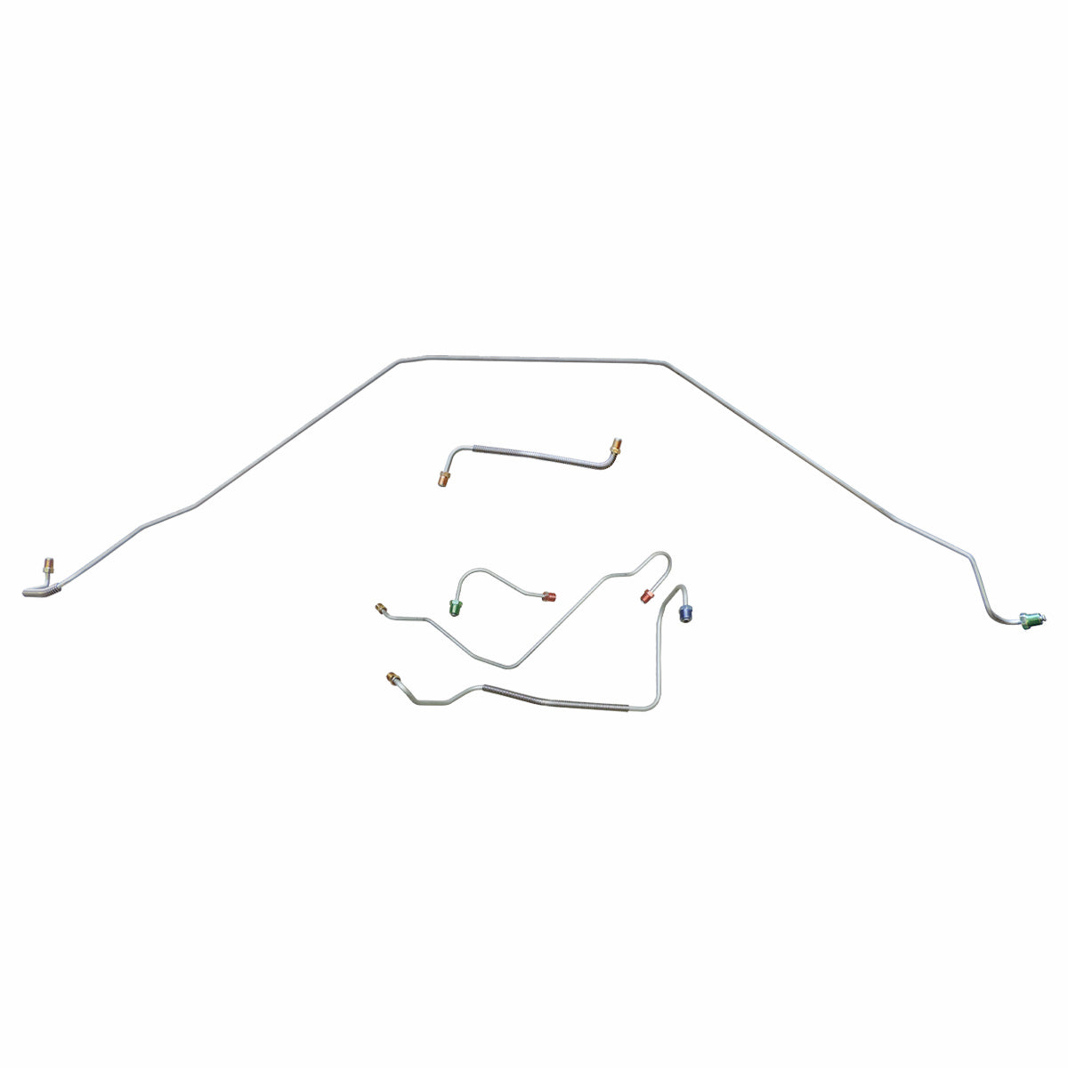 This preformed front brake line kit includes all the metal brake lines to supply the front two wheels of your vehicle and includes the master cylinder lines, left front line, and right front crossover line.