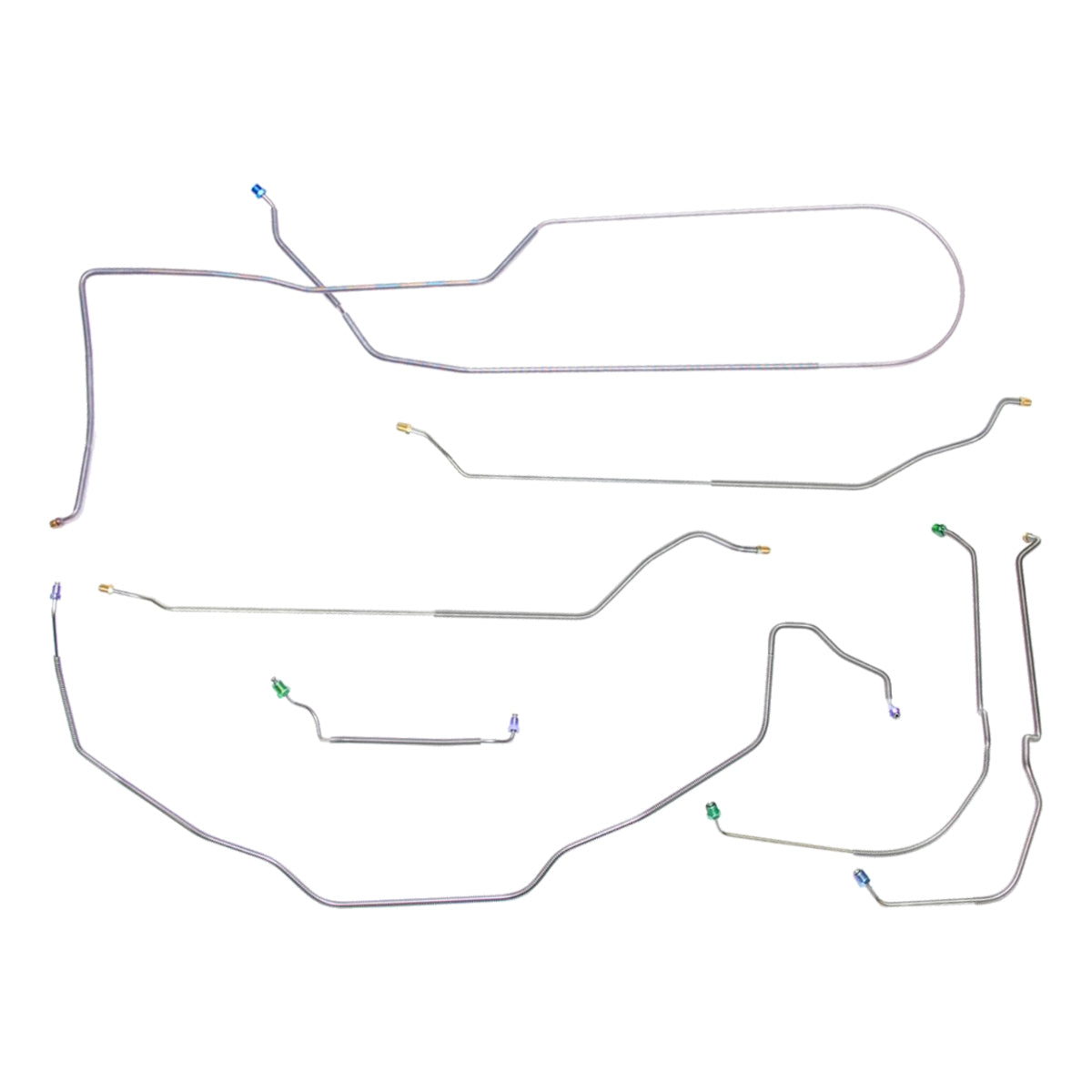 This preformed complete brake line kit will replace all the metal brake lines on your vehicle and includes the master cylinder lines, left front line and right front crossover line, intermediate lines, and rear axle lines/trailing arm lines.