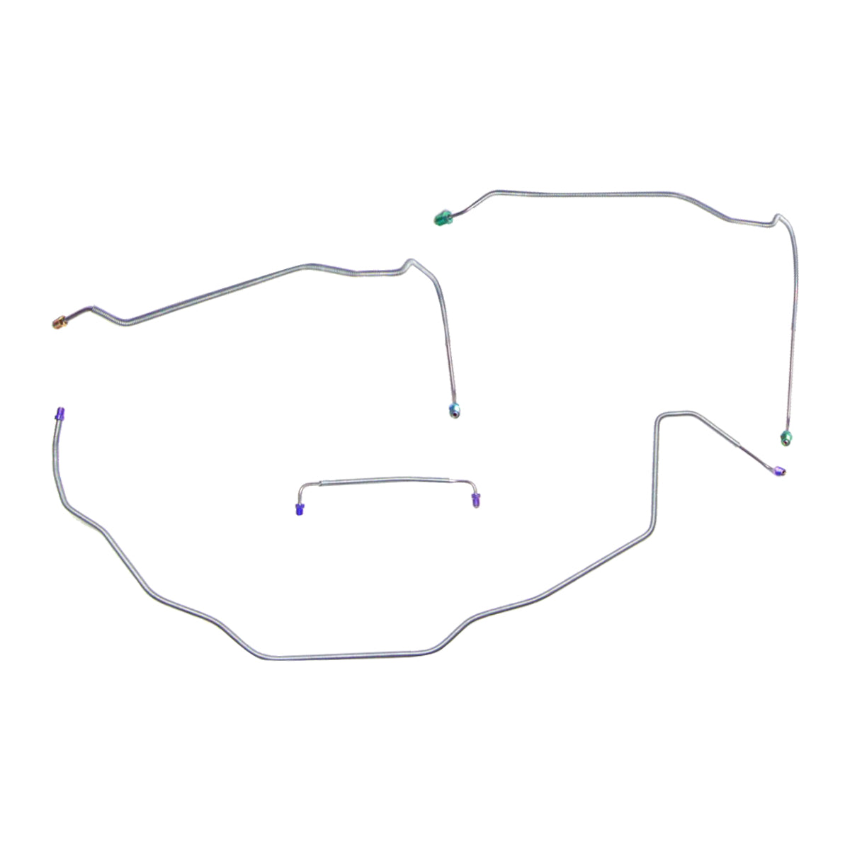 This preformed front brake line kit includes all the metal brake lines to supply the front two wheels of your vehicle and includes the master cylinder lines, left front line, and right front crossover line.