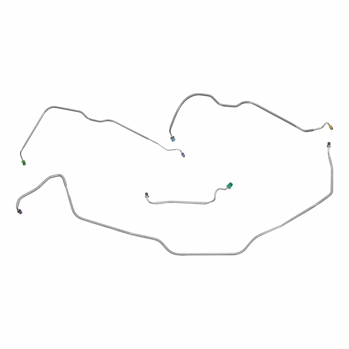 This preformed front brake line kit includes all the metal brake lines to supply the front two wheels of your vehicle and includes the master cylinder lines, left front line, and right front crossover line.