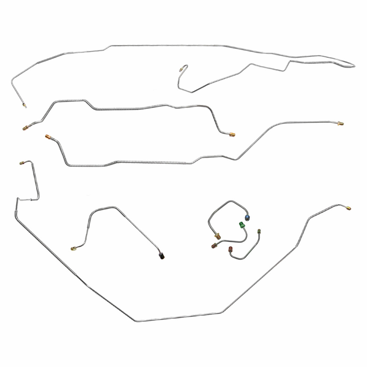 This preformed complete brake line kit will replace all the metal brake lines on your vehicle and includes the master cylinder lines, left front line and right-front crossover line, intermediate lines, and rear axle lines/trailing arm lines.