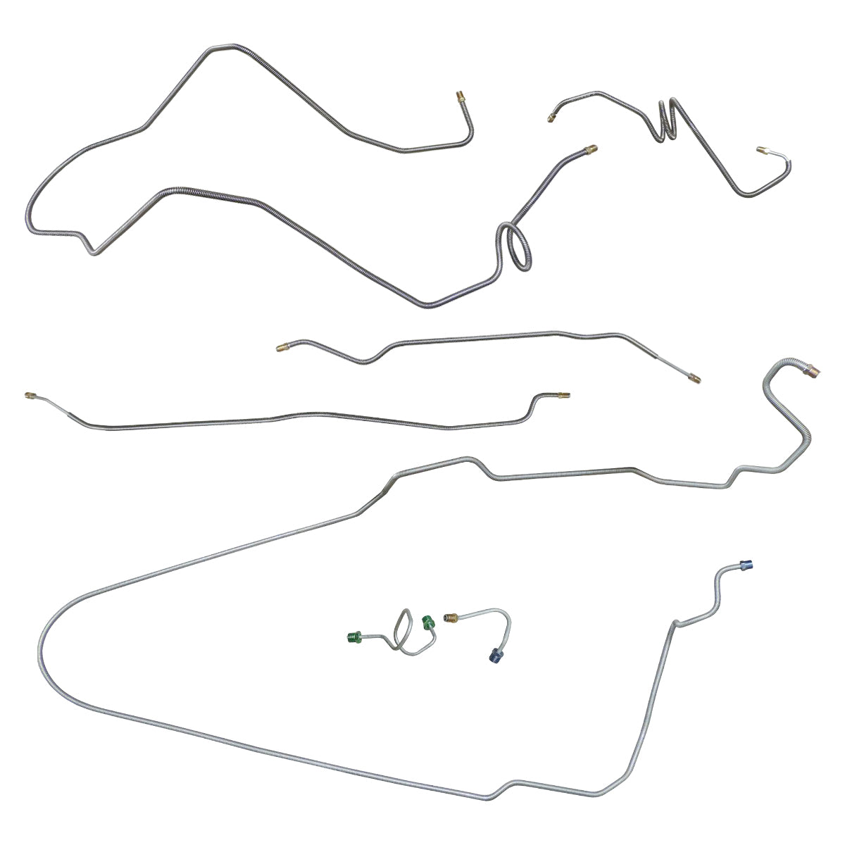This preformed complete brake line kit will replace all the metal brake lines on your vehicle and includes the master cylinder lines, left front line and right front crossover line, intermediate lines, and rear axle lines/trailing arm lines.