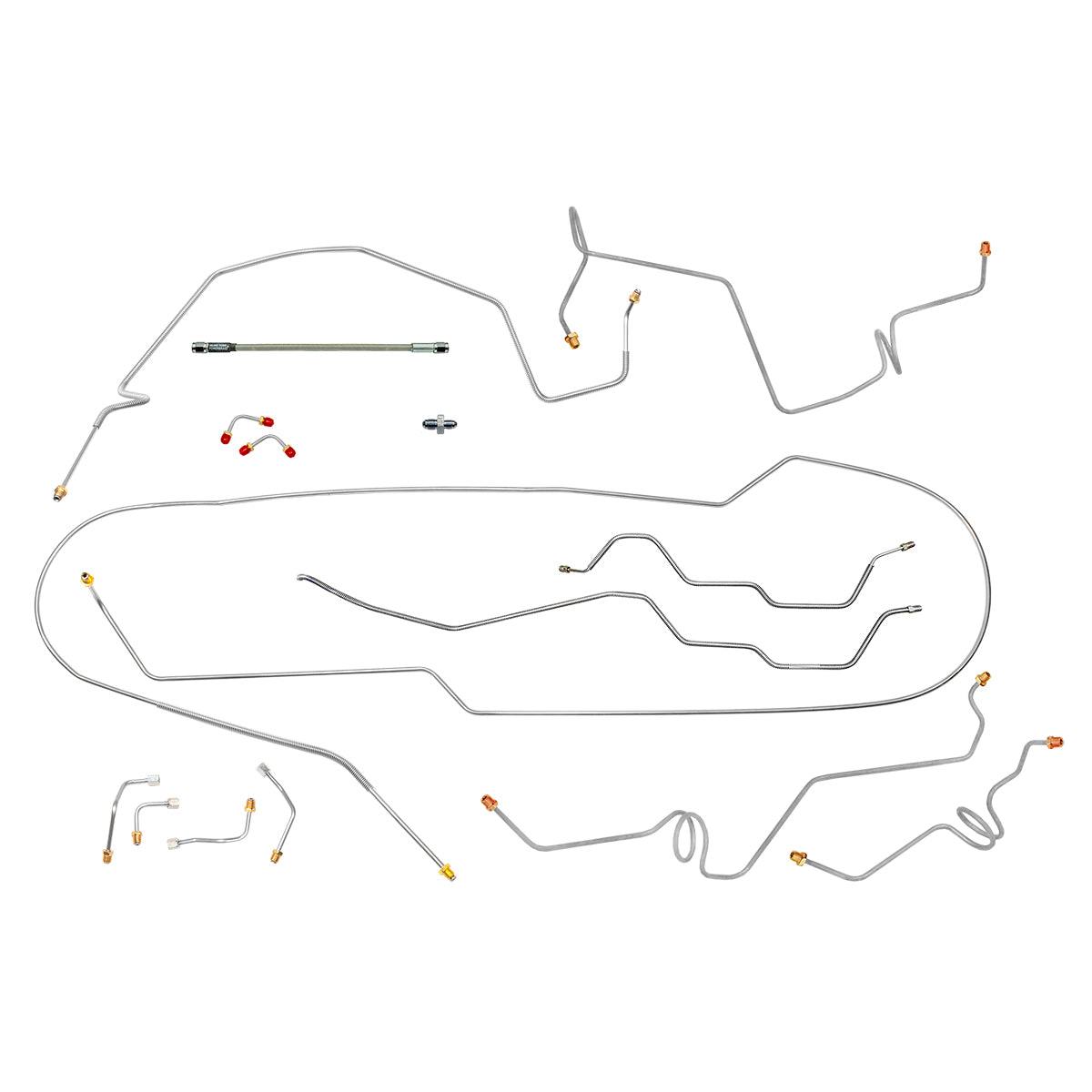 This preformed complete brake line kit will replace all the metal brake lines on your vehicle and includes the master cylinder lines, left front line and right front crossover line, intermediate lines, and rear axle lines/trailing arm lines.