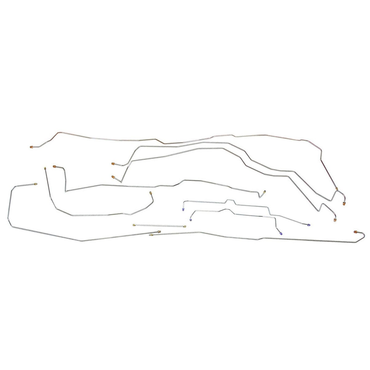 This preformed complete brake line kit will replace all the metal brake lines on your vehicle and includes the master cylinder lines, left front line and right front crossover line, intermediate lines, and rear axle lines/trailing arm lines.