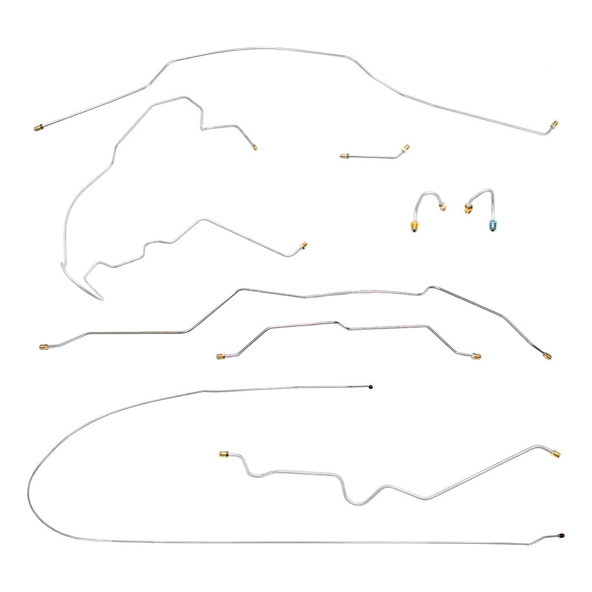 This preformed complete brake line kit will replace all the metal brake lines on your vehicle and includes the master cylinder lines, left front line and right front crossover line, intermediate lines, and rear axle lines/trailing arm lines.