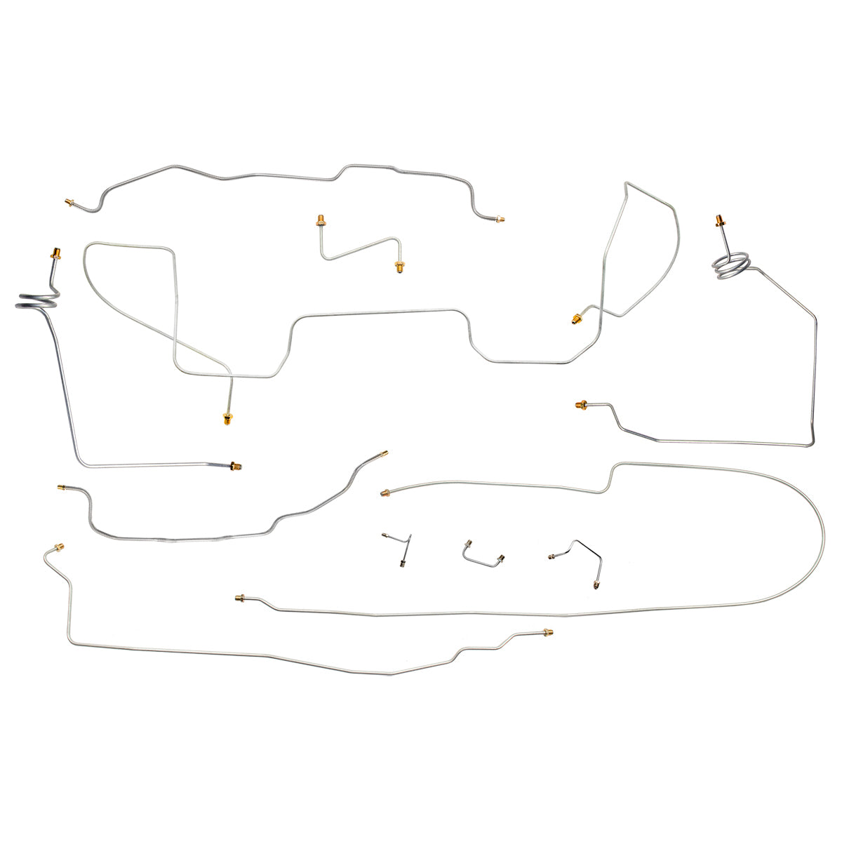 This preformed complete brake line kit will replace all the metal brake lines on your vehicle and includes the master cylinder lines, left front line and right front crossover line, intermediate lines, and rear axle lines/trailing arm lines.
