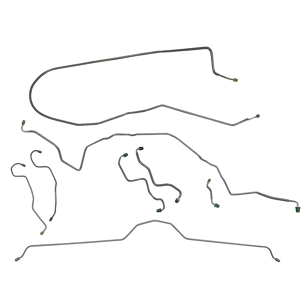 This preformed complete brake line kit will replace all the metal brake lines on your vehicle and includes the master cylinder lines, left front line and right front crossover line, intermediate lines, and rear axle lines/trailing arm lines.