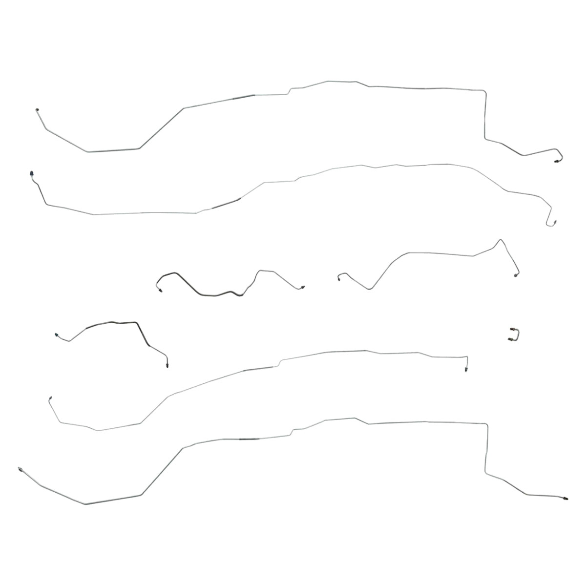 This preformed complete brake line kit will replace all the metal brake lines on your vehicle and includes the master cylinder lines, left front line and right-front crossover line, intermediate lines, and rear axle lines/trailing arm lines.