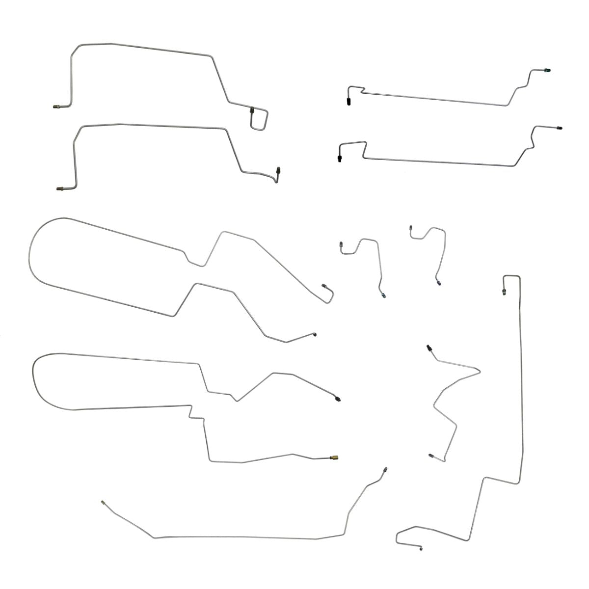 This preformed complete brake line kit will replace all the metal brake lines on your vehicle and includes the master cylinder lines, left front line and right-front crossover line, intermediate lines, and rear axle lines/trailing arm lines.