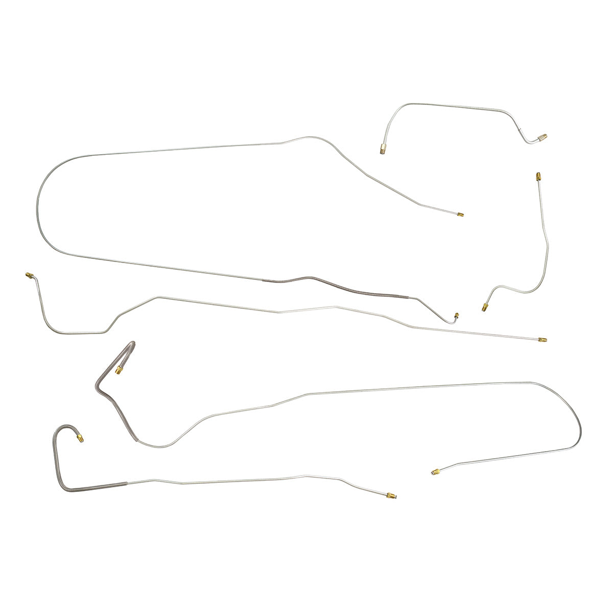 This preformed complete brake line kit will replace all the metal brake lines on your vehicle and includes the master cylinder lines, left front line and right-front crossover line, intermediate lines, and rear axle lines/trailing arm lines.