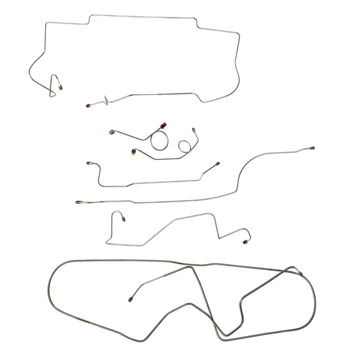 This preformed complete brake line kit will replace all the metal brake lines on your vehicle and includes the master cylinder lines, left front line and right front crossover line, intermediate lines, and rear axle lines/trailing arm lines.